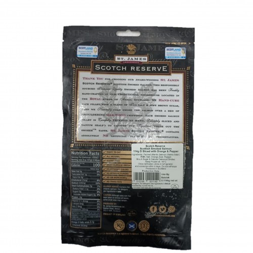 This orange and pepper infused Smoked Salmon is a delicious twist on the classic Scottish delicacy. An extravagant combination of pepper and zested orange, creating the ultimate treat. Each fillet is carefully trimmed by hand to remove 100% of the dark meat, thinly-sliced and then vacuum sealed for freshness. Perfect for breakfast.
